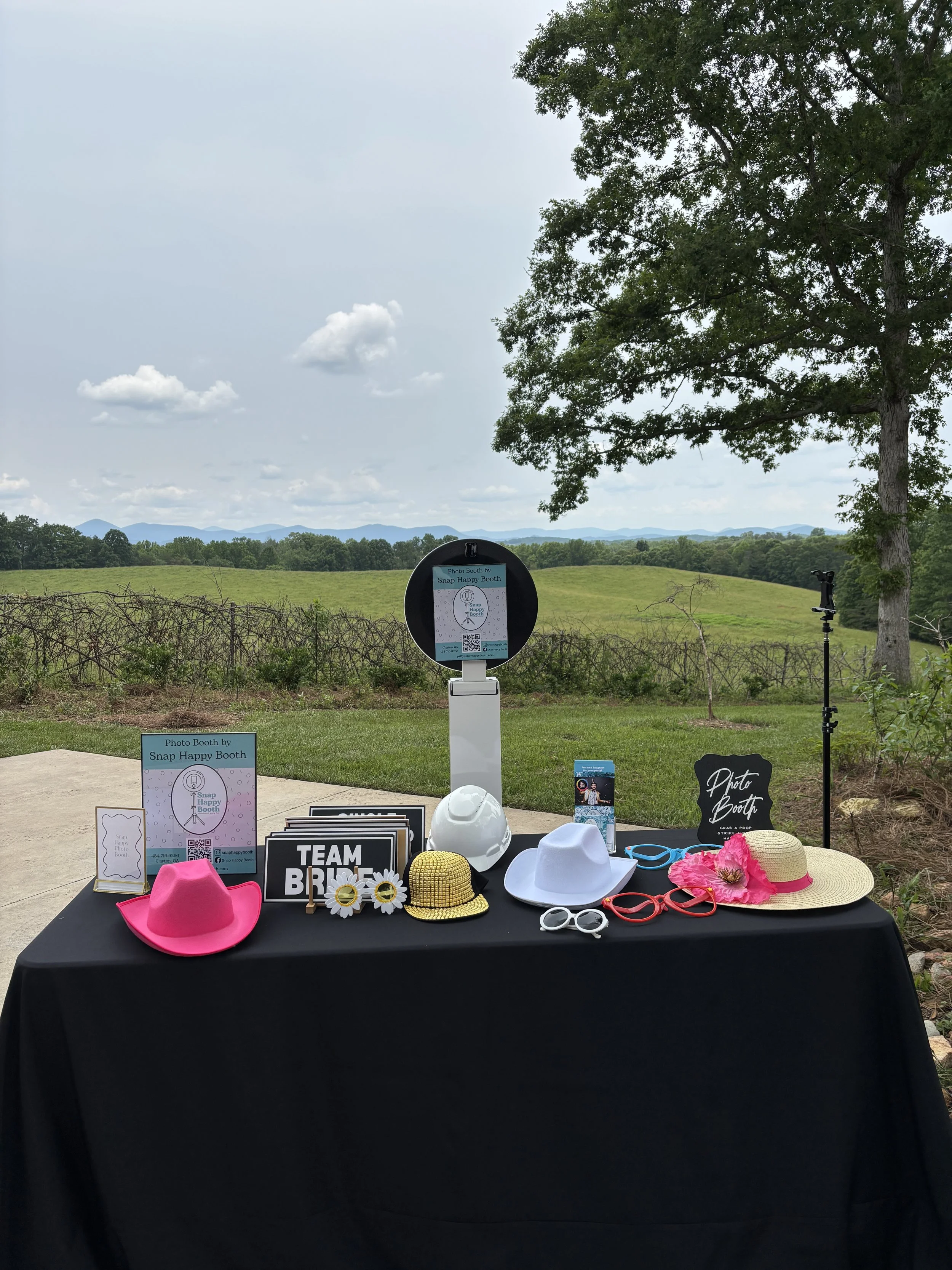 At Snap Happy Booth, we specialize in bringing extra fun to North Georgia weddings. Our professional setup, curated props, and roaming photo booth option ensure that every laugh, smile, and dance move is captured in style. Whether your wedding is at a vineyard, rustic barn, or mountain lodge in Dahlonega, we’ll help make it unforgettable.